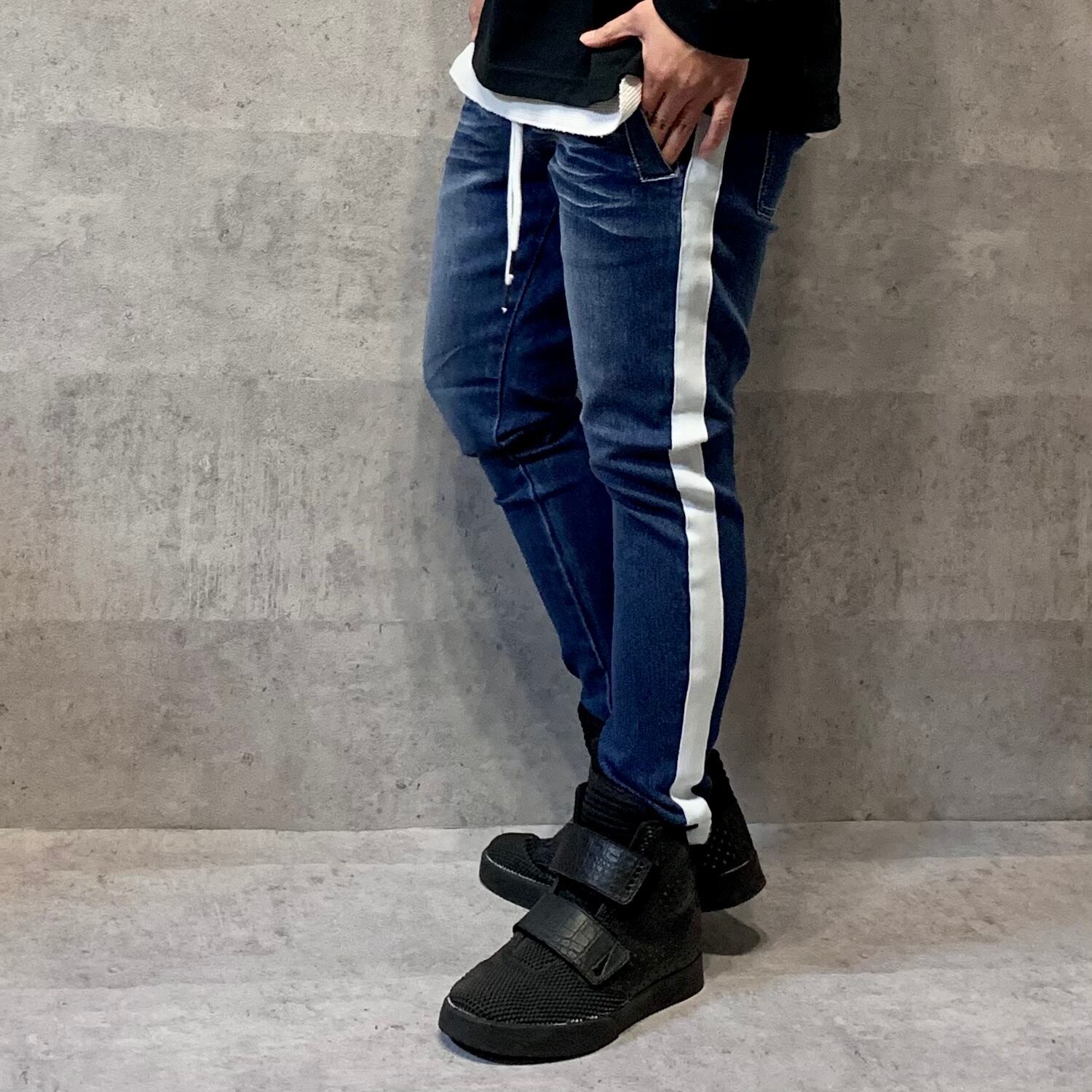 サイドラインがアクセントのスキニーデニムジョガーパンツです。