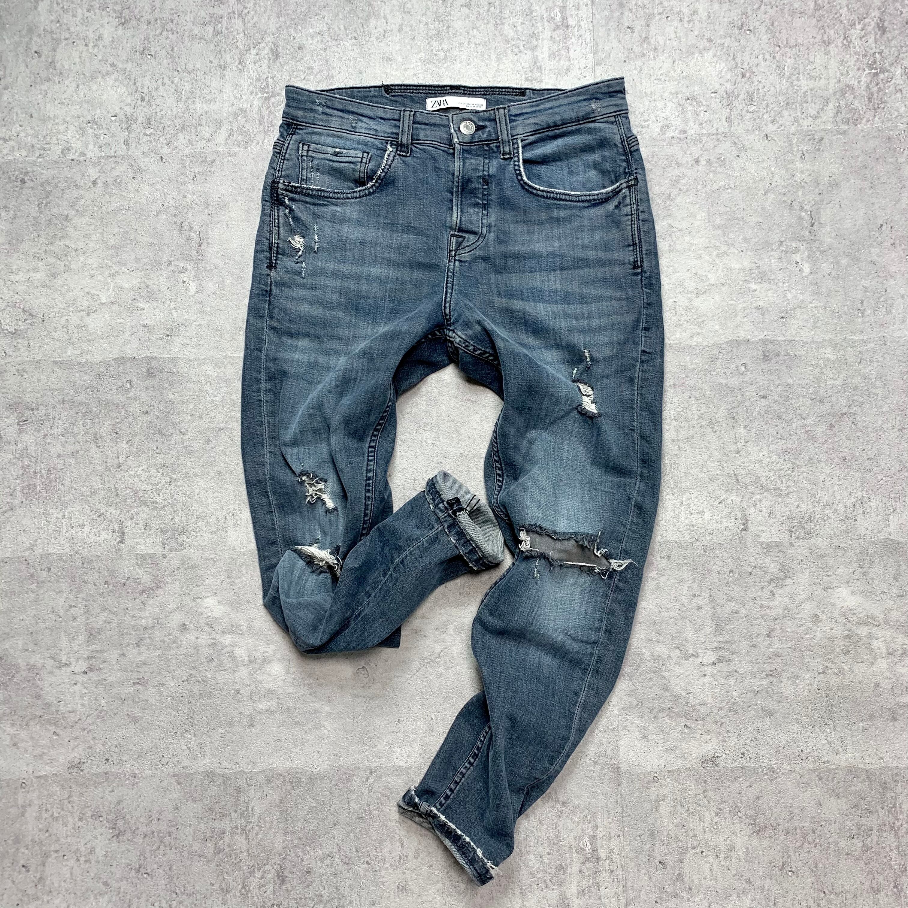 ZARA MAN ザラマン ストレッチ クラッシュ デニム スリムパンツ USA30 ■ Q06 【USED】