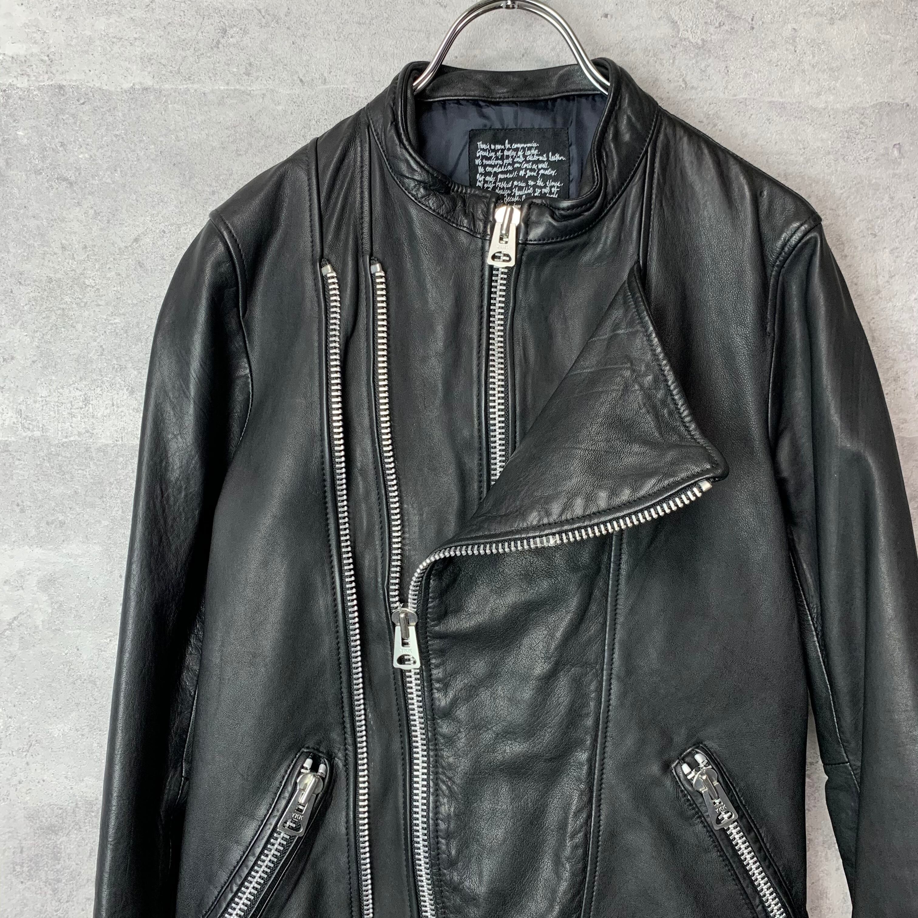 ナノユニバース ラム革 羊革 ダブルライダースジャケット S ■ U47 【USED】