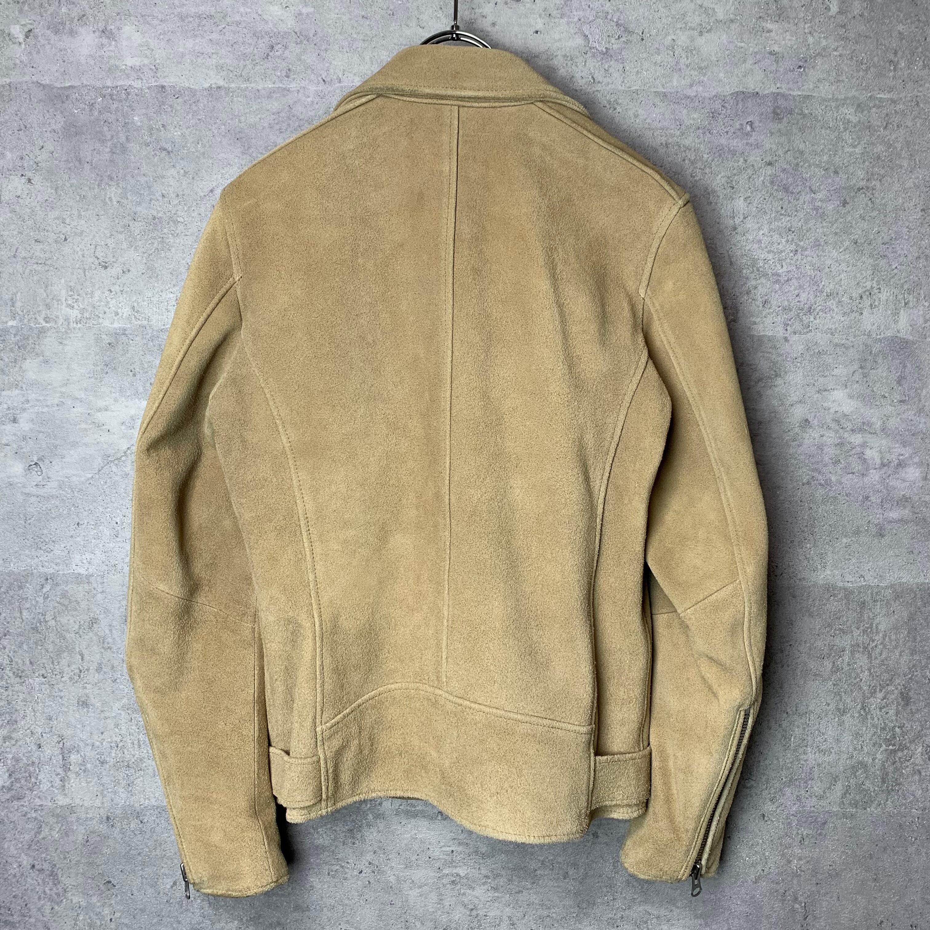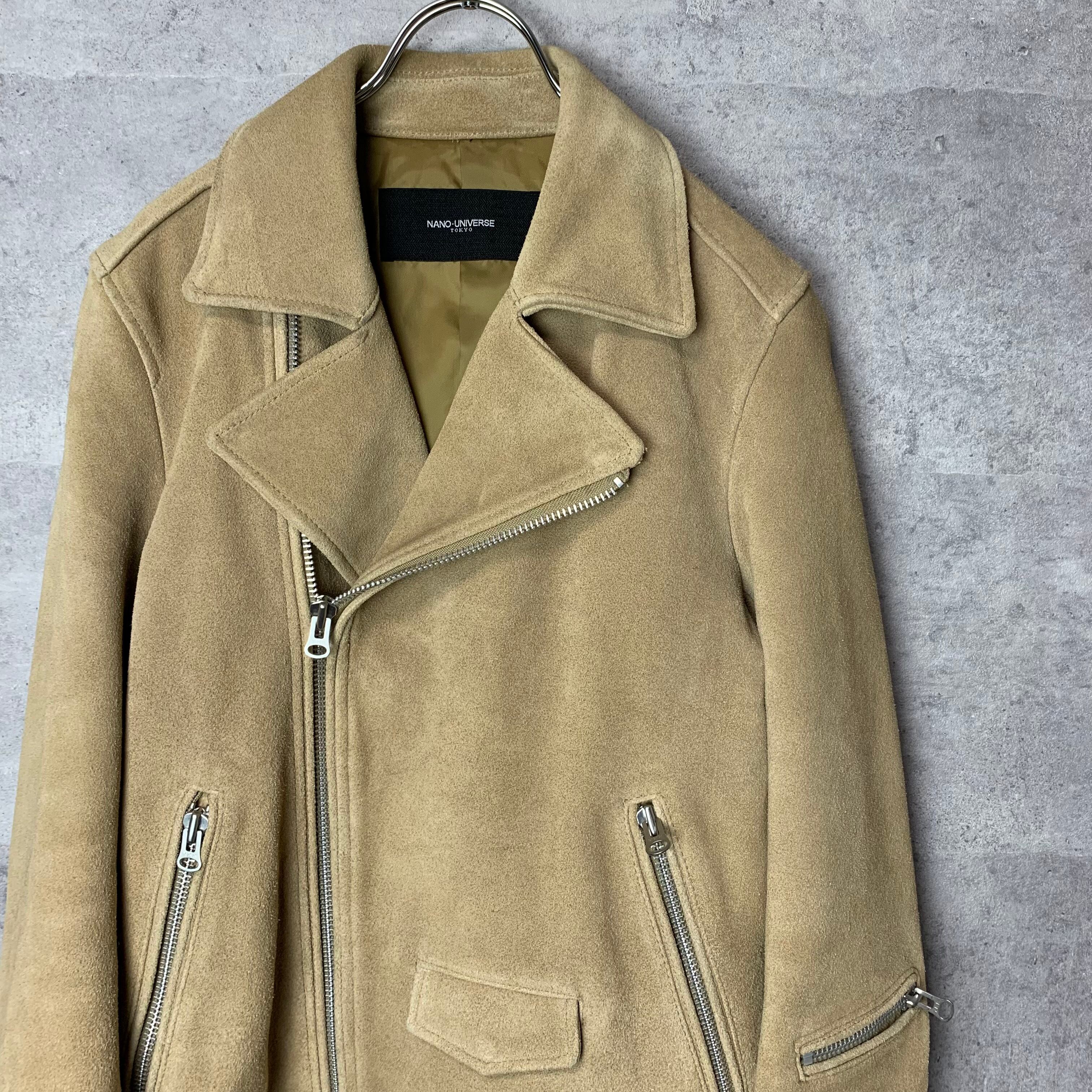 ナノユニバース スウェード ライダース ジャケット ダブルライダース 本革 牛革 ベージュ M ● Y31 【USED】
